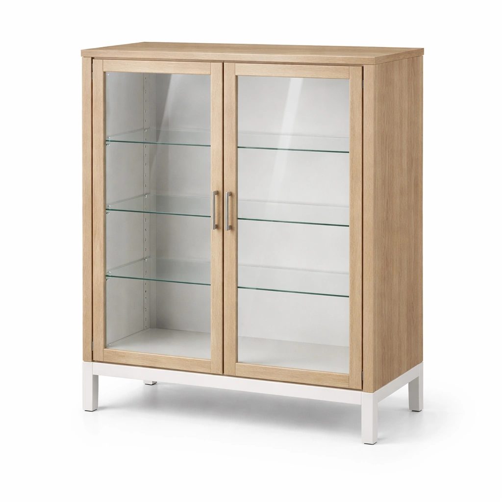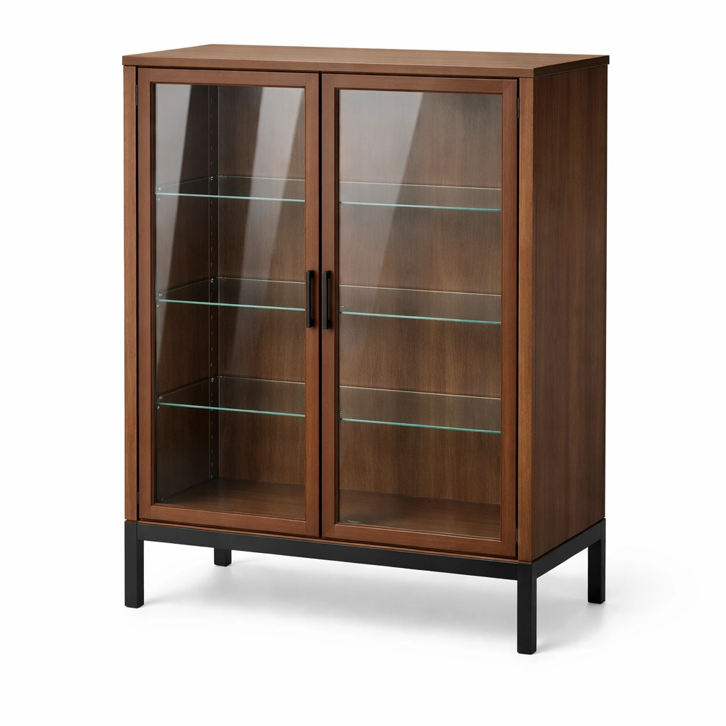Vitrina de madera con puertas de vidrio y estantes de vidrio