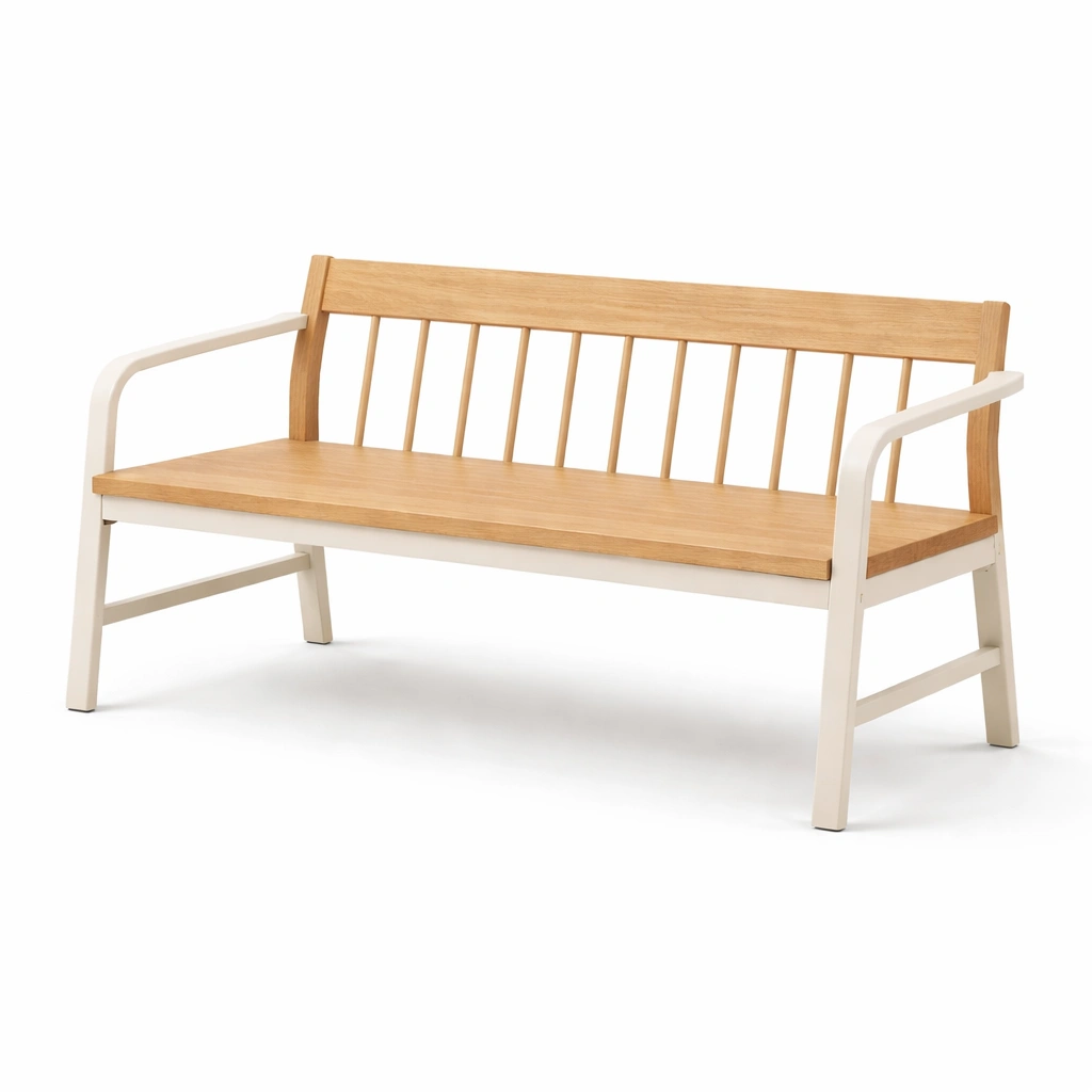 El marco está hecho de acero pintado en blanco, mientras que el asiento y el respaldo son de madera maciza.